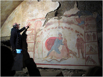 Antiikinaikaisista uskonnoista tutustuimme erityisen hyvin Mithran kulttiin. Rooman kaupungista löytyykin runsaasti kultille omistettuja mithraeumeja.
