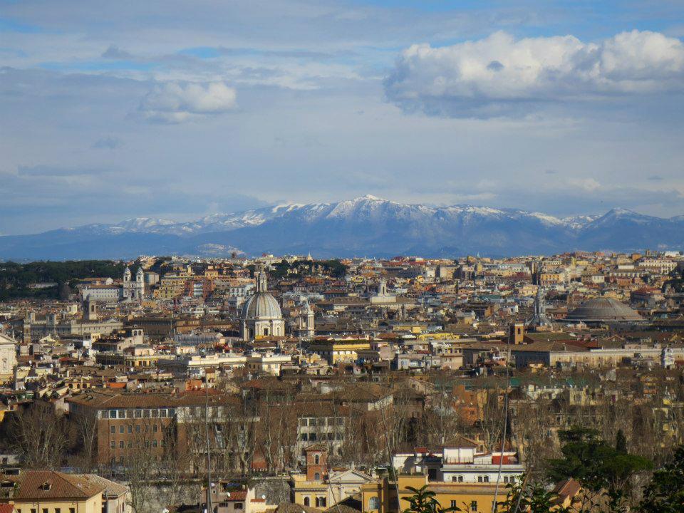 Tilaisuus koitti kaksi vuotta myöhemmin. Tällä kertaa, viime maaliskuussa, kiipesin yhtä innokkaana Gianicolo-kukkulasi rinnettä ylös. Tällä kertaa ei onneksi satanut, rinkan olin jättänyt jo ennalta vuokraamaani asuntoon. Ohitin kirjailija Torquato Tasson haudan, ihailin panoraamaasi: täälläkö oikeasti työskentelisin seuraavat puoli vuotta? Pinjat nyökyttelivät tuulessa: kyllä vain.