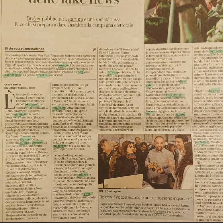 Broker, pubblicitari, start up e una società russa, ecco chi si prepara a dare l’assalto alla campagna elettorale. (La Repubblica, 3.12.2017: 6)