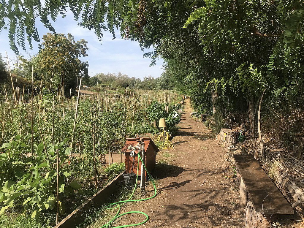 Tarkastelen taiteellisessa tutkimuksessani yhteisöpuutarhoja yhtä paljon diskurssina kuin käytäntönä. Roomassa yhteisöpuutarhat ymmärretään useimmiten erillisiksi alueiksi, joilla viljellään vihanneksia ja kukkia mutta mahdollisesti myös yrttejä, salaatteja, marjoja, viinirypäleitä ja hedelmiä. Roomalaiset yhteisöpuutarhat ovat lisäksi sosiaalisen toiminnan paikkoja. Niissä rakennettu ja ekologinen ympäristö kohtaavat ympäröivän todellisuuden. Aktiivisimmin käytössä olevat puutarhat keskittyvät viljelyyn. Niiden todetaan roomalaisessa yhteisöpuutarhadiskurssissa olevan yhteydessä sosiaaliseen ja taloudelliseen epäoikeudenmukaisuuteen.