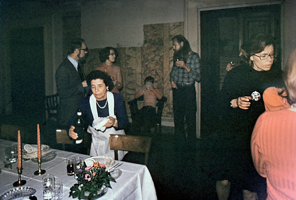Kurssin osallistujat olivat minulle tuntemattomia. Muutama heistä oli tullut samalla laivallakin tietämättäni. Meitä oli kahdeksan, muut olivat taidehistorioitsijoita ja eri vaiheessa opintoja: Ritva [Wäre, o.s. Tuomi] kandi ja jo kiinni työelämässä, itselläni edessä vielä viisi vuotta opintoja. Päiväkirjassa totesin muutaman päivän kuluttua tuntevani itseni orvoksi ja potevani koti-ikävää. Yhteydet kotiin olivat harvoja: etukäteen oli varattava soittoaika puhelinkopista kaupungin keskustan konttorissa. Villa Lanten portaikon pöytä oli odotuksen paikka: olisiko kirjeitä?