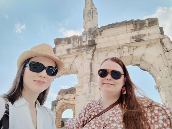 Toukokuinen residenssijaksomme Suomen Rooman-instituutin väistötiloissa, Villino Sforza Cesarini al Gianicolossa, sisälsi tutkimusmatkan Etelä-Italian Campanian alueella sijaitsevaan Capuaan ja sen museoihin. Syy Capuan valikoitumiselle matkakohteeksi oli siellä sijaitseva roomalainen mosaiikki, joka kuuluu Kallungin tutkimusmateriaaleihin. Sen näkeminen paikan päällä helpotti analysointityötä ja mahdollisti yksityiskohtaisten kuvien ottamisen myöhempää tarkastelua varten. Kumpikaan meistä ei ollut aiemmin käynyt Capuassa sen historiallisesta merkittävyydestä huolimatta, joten uusi kokemus houkutti. Perehdyimme retken yhteydessä kaupungin ja sen alueen historiaan myös laajemmin.