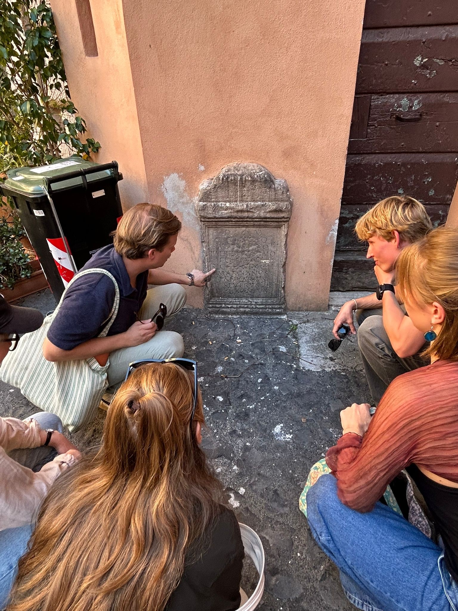 Historian opiskelua on vaikea kuvitella ilman kirjastoja ja kirjoja. Lokakuussa 2025 pidetty antiikin Rooman johdantokurssi toi kuitenkin hyvin esille sen, ettei kaikki olennainen löydy vain paperille painetusta musteesta. Rooman, Etrurian ja Campanian teiden astelu yhdessä instituutin johtajan Ria Bergin, tutkijalehtori Tuomo Nuorluodon ja muun instituutin väen kanssa opetti enemmän kuin monen monet kirjastossa istutut tunnit.